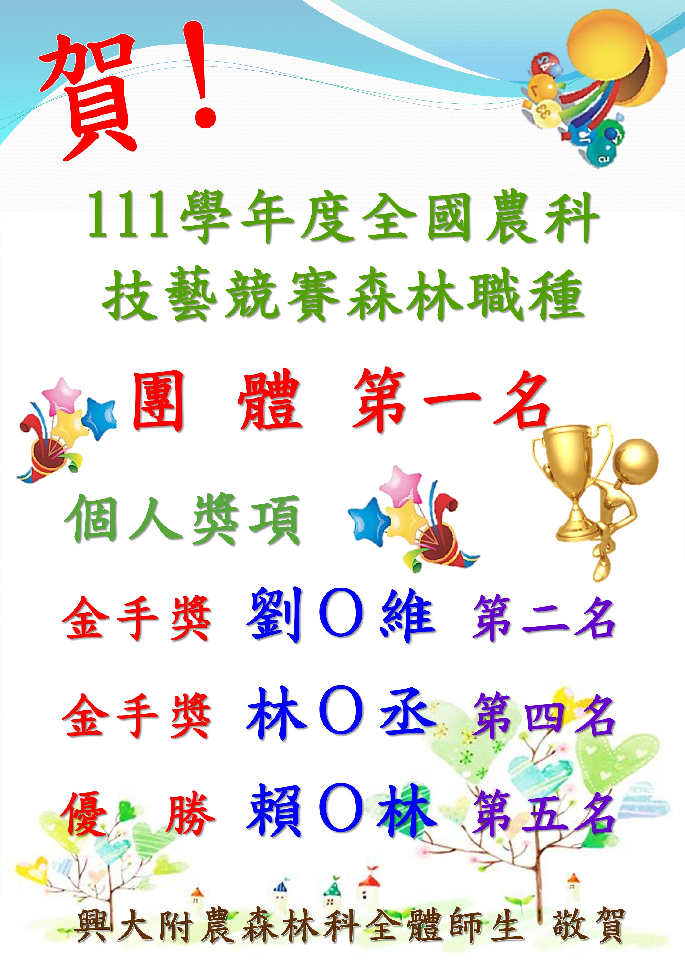 111學年度技藝競賽榜單